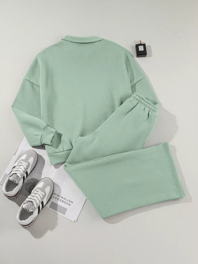 Drop Shoulder Zip Up Jacket and Drawstring Pants Active 2pcs Set