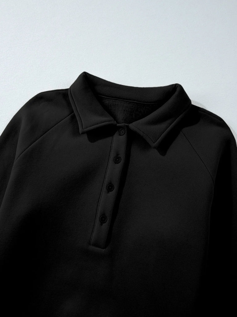 Collared Sweatshirt and High Waist Pants Active Set